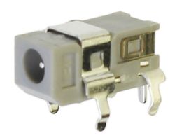 0.65 mm Center Pin, 2.0 A, Right Angle, PCB Mount, Gray DC Power Jack with Shield and Kinked Pins